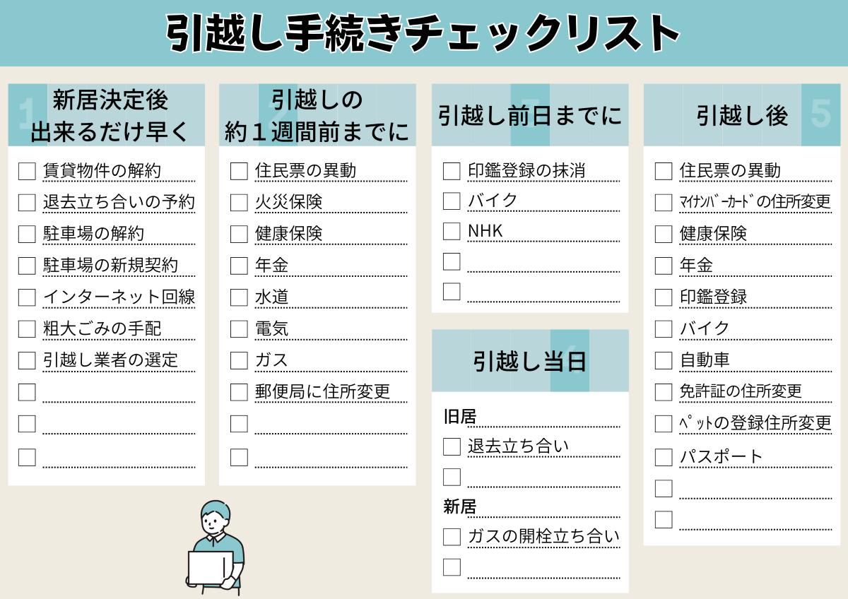 引越しの手続きを次の5つのタイミングに分けて説明します。